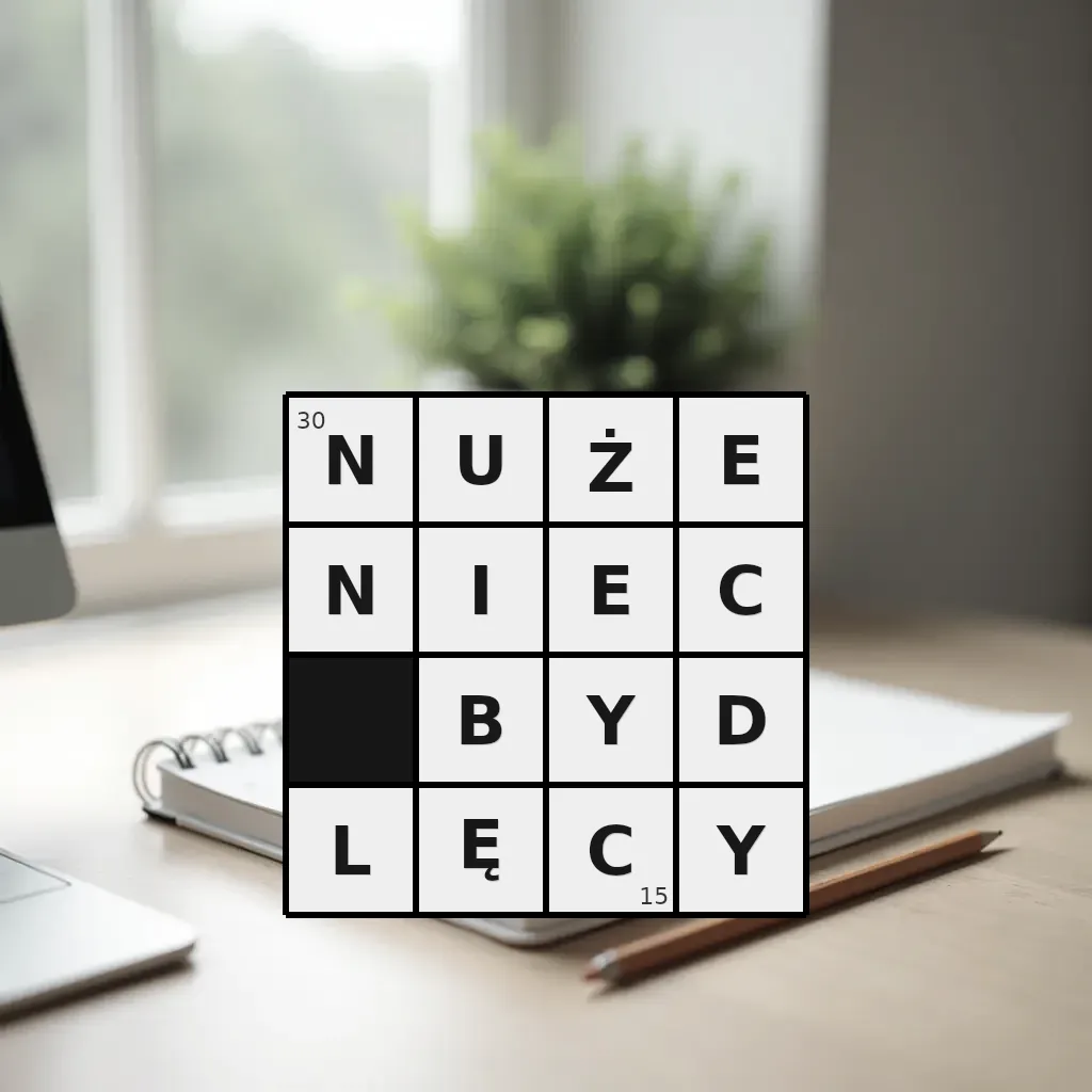 Słowo „nużeniec bydlęcy” ma 15 znaków (bez spacji i łączników).
