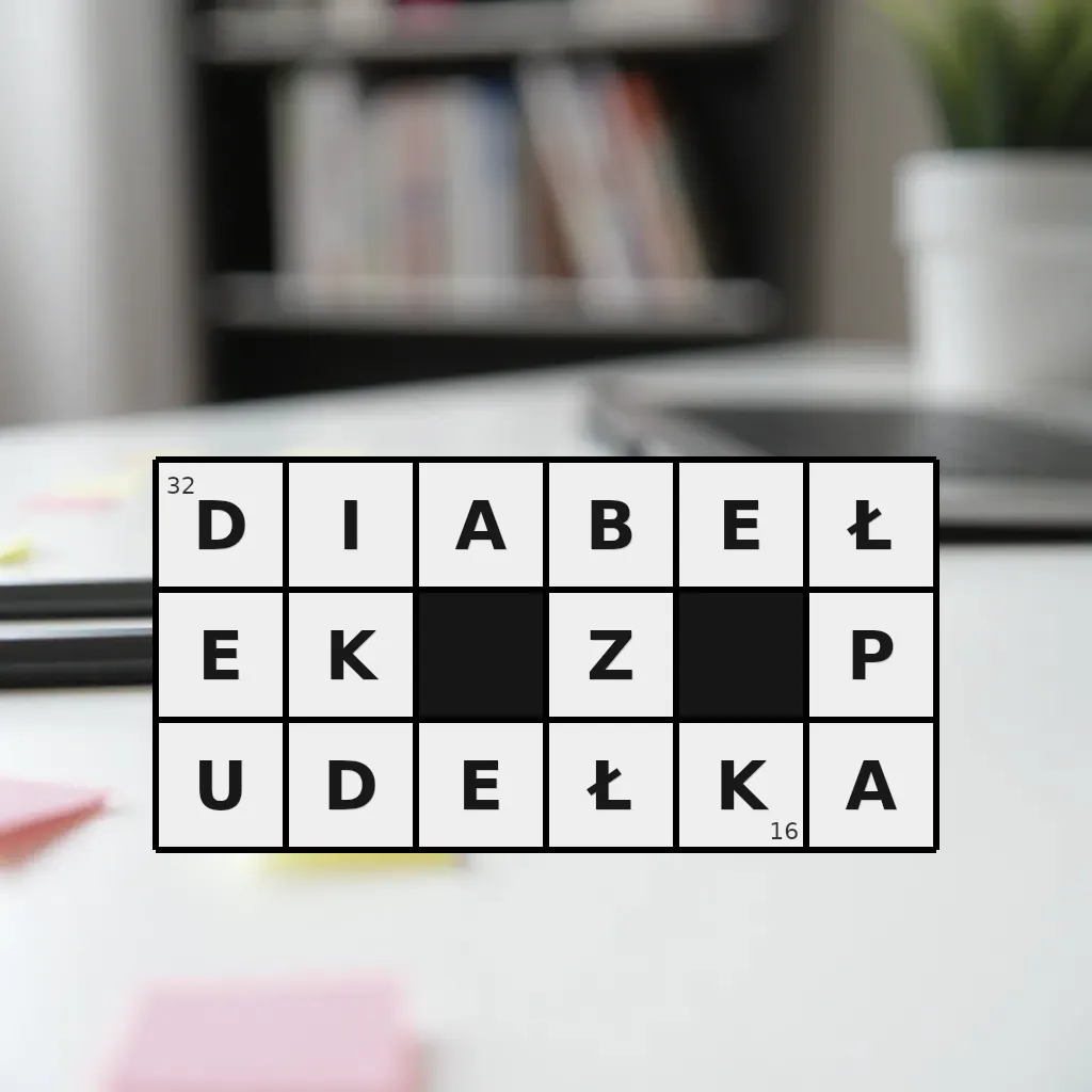 Słowo „diabełek z pudełka” ma 16 znaków (bez spacji i łączników).