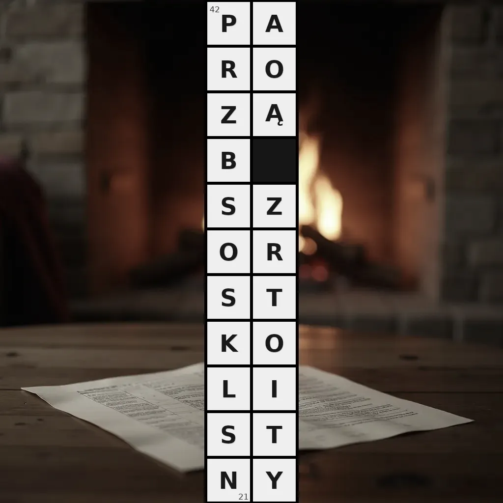 Zawiera litery: A, B, I, K, L, N, O, O, O, P, R, R, S, S, S, T, T, Y, Z, Z, Ą