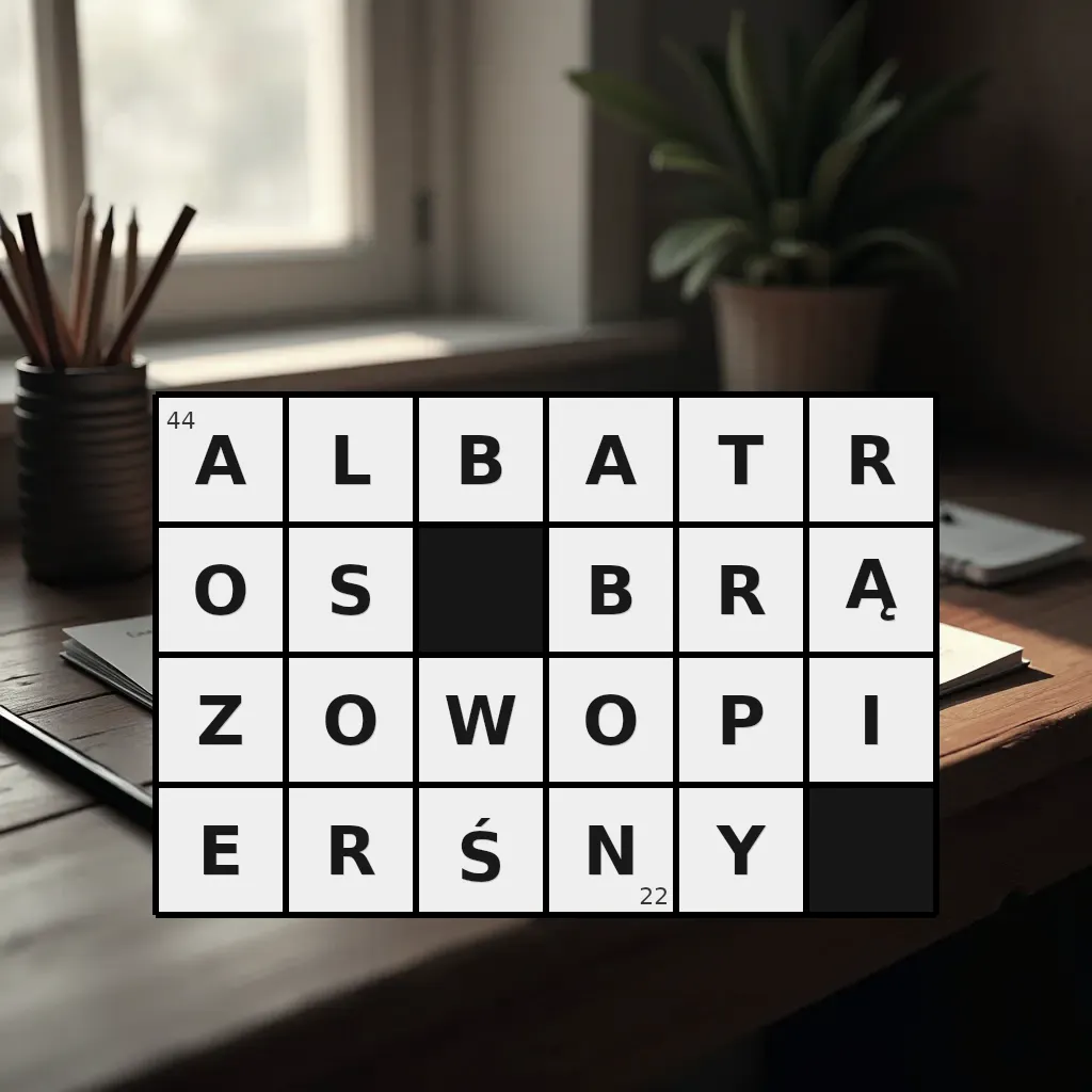 Słowo „albatros brązowopierśny” ma 22 znaki (bez spacji i łączników).