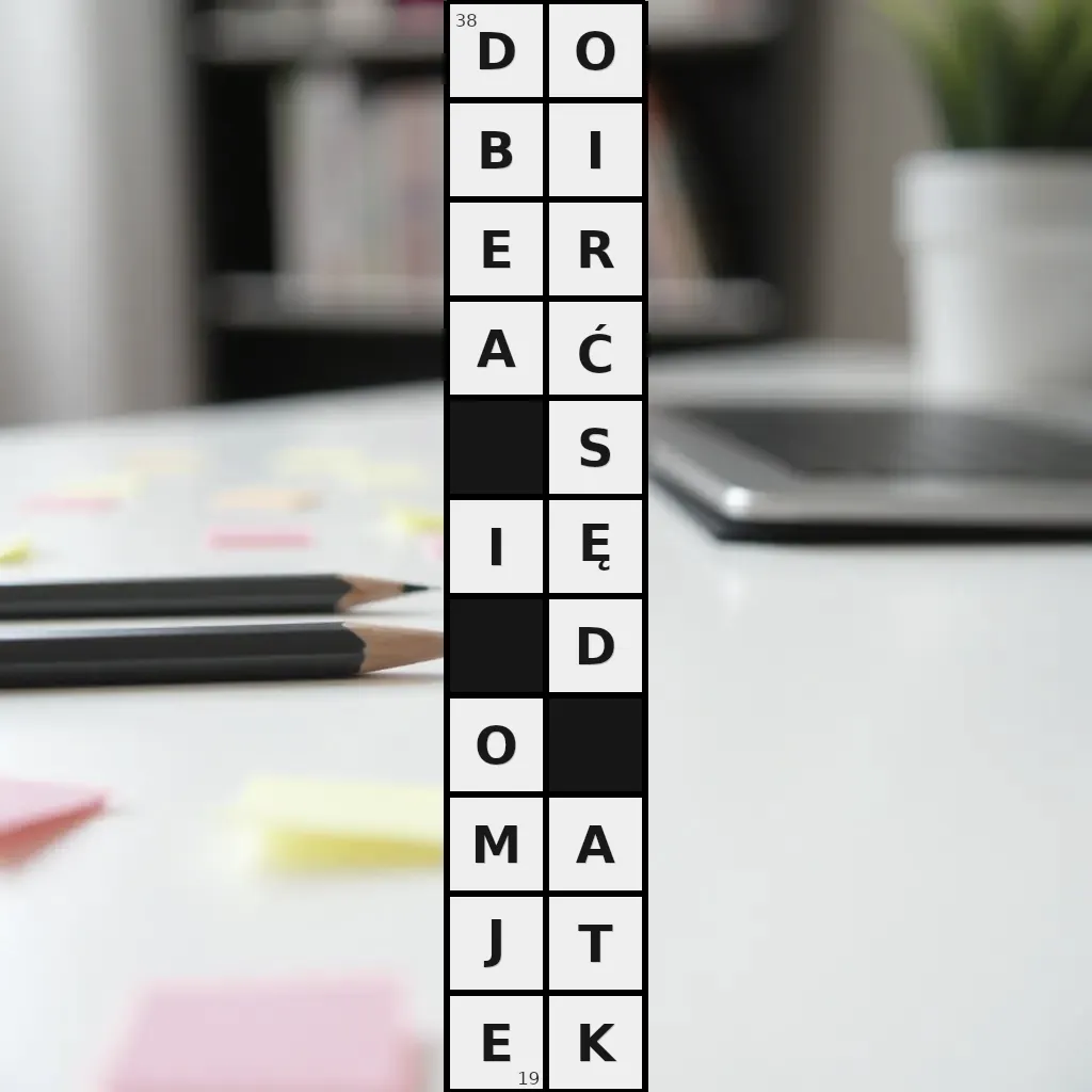 Zawiera litery: A, A, B, D, D, E, E, I, I, J, K, M, O, O, R, S, T, Ć, Ę