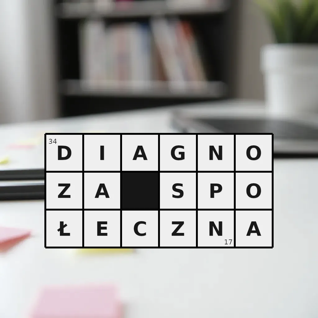 Słowo „diagnoza społeczna” ma 17 znaków (bez spacji i łączników).