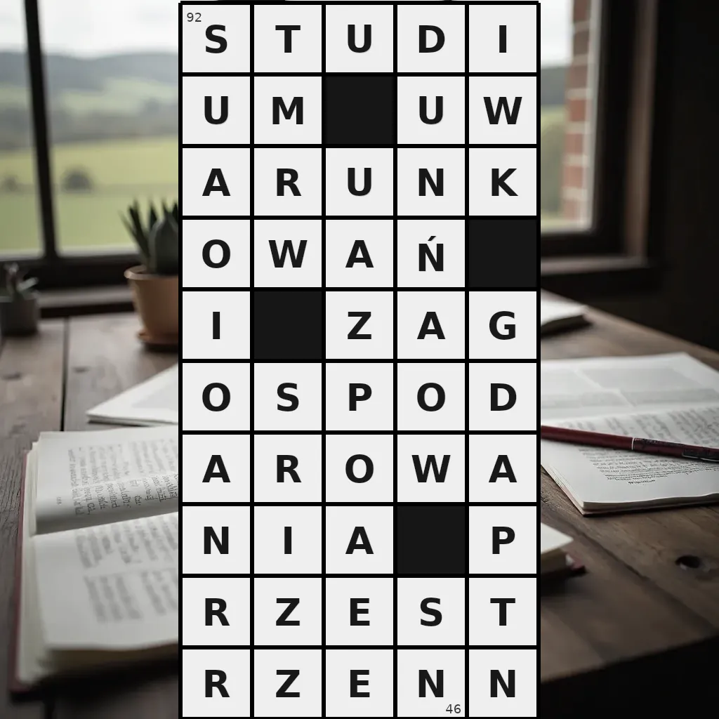 Słowo „studium uwarunkowań i zagospodarowania przestrzenn” ma 46 znaków (bez spacji i łączników).
