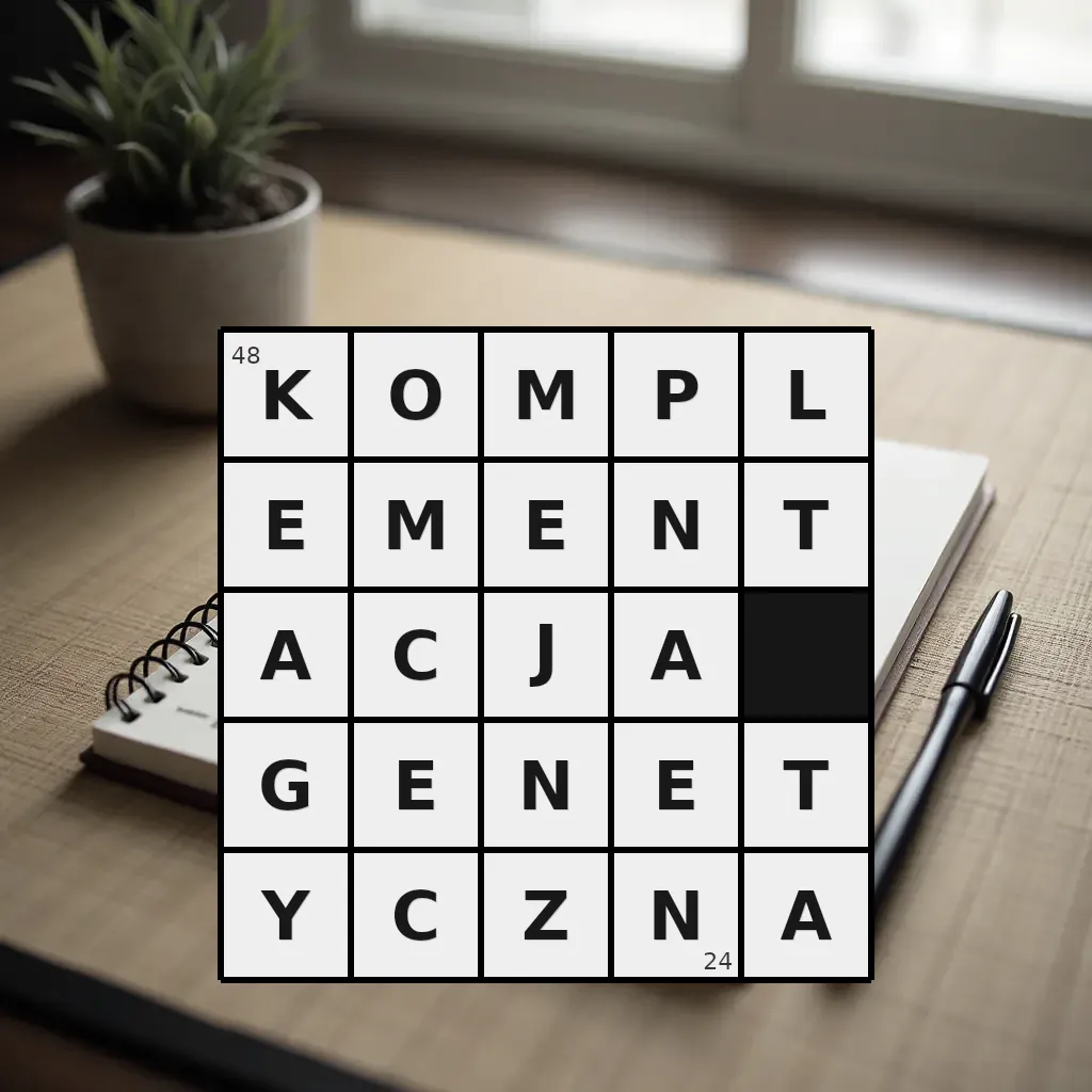 Słowo „komplementacja genetyczna” ma 24 znaki (bez spacji i łączników).