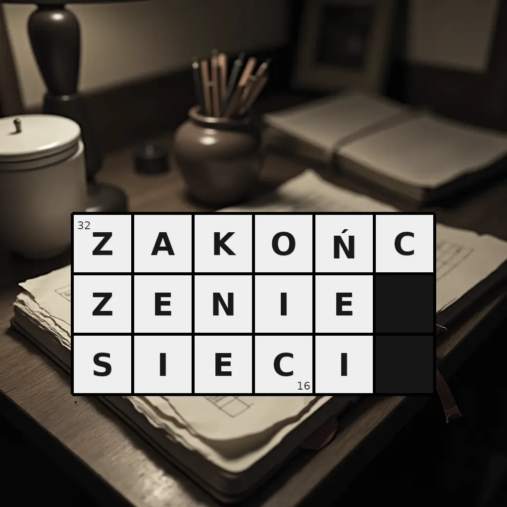 Słowo „zakończenie sieci” ma 16 znaków (bez spacji i łączników).
