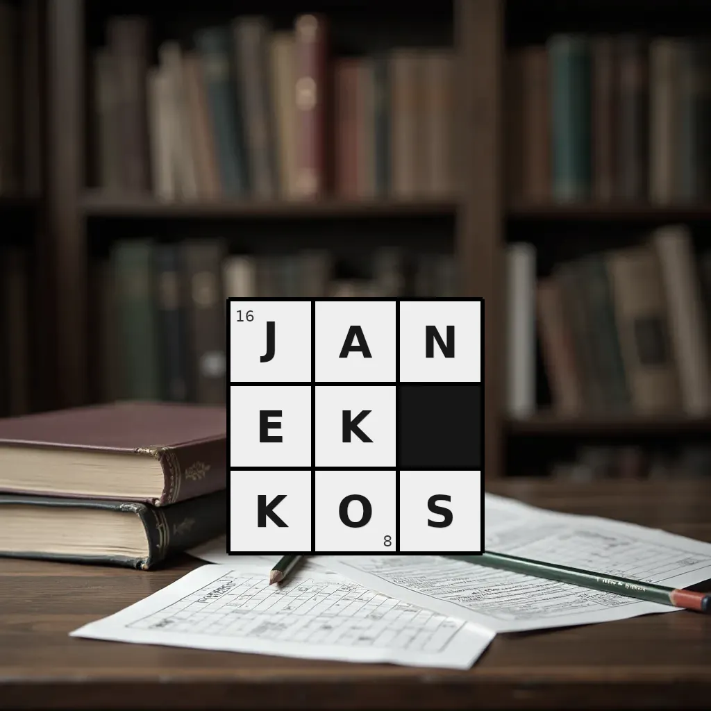 Słowo „janek kos” ma 8 znaków (bez spacji i łączników).