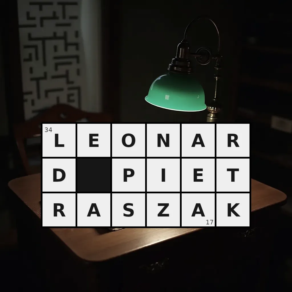 Słowo „leonard pietraszak” ma 17 znaków (bez spacji i łączników).