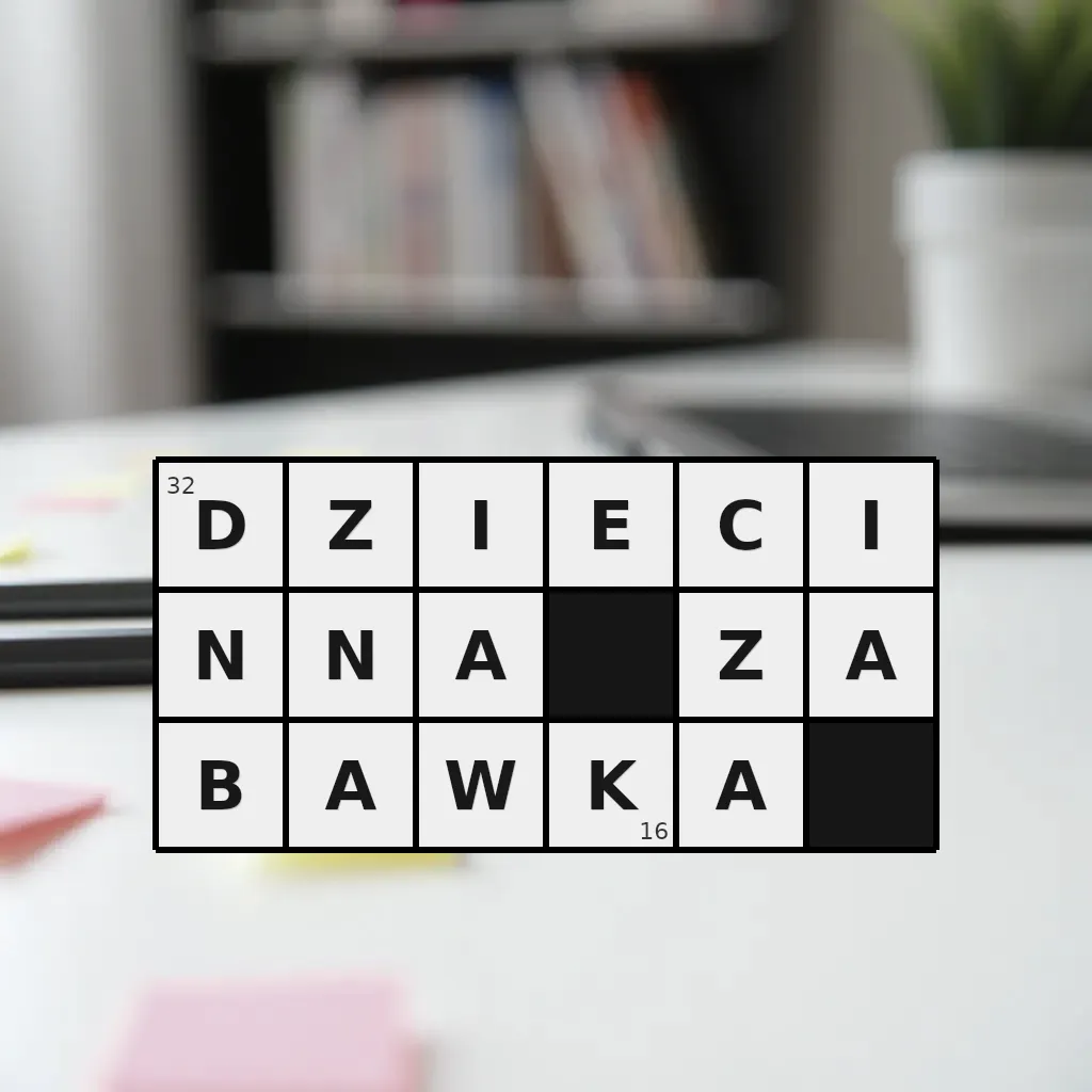 Słowo „dziecinna zabawka” ma 16 znaków (bez spacji i łączników).