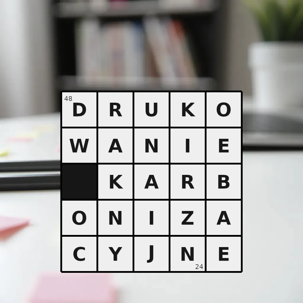 Słowo „drukowanie karbonizacyjne” ma 24 znaki (bez spacji i łączników).