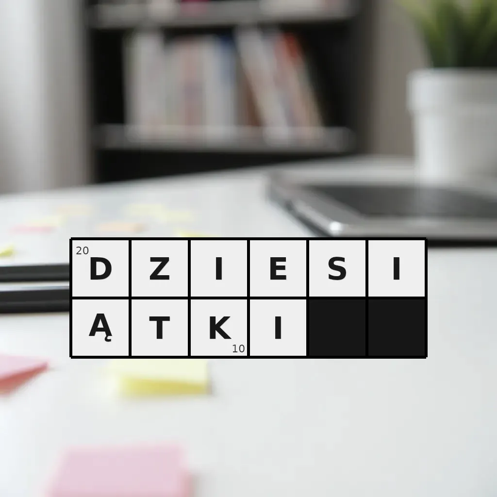 Słowo „dziesiątki” ma 10 znaków (bez spacji i łączników).