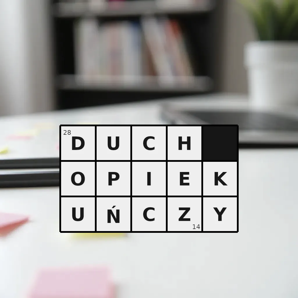 Słowo „duch opiekuńczy” ma 14 znaków (bez spacji i łączników).