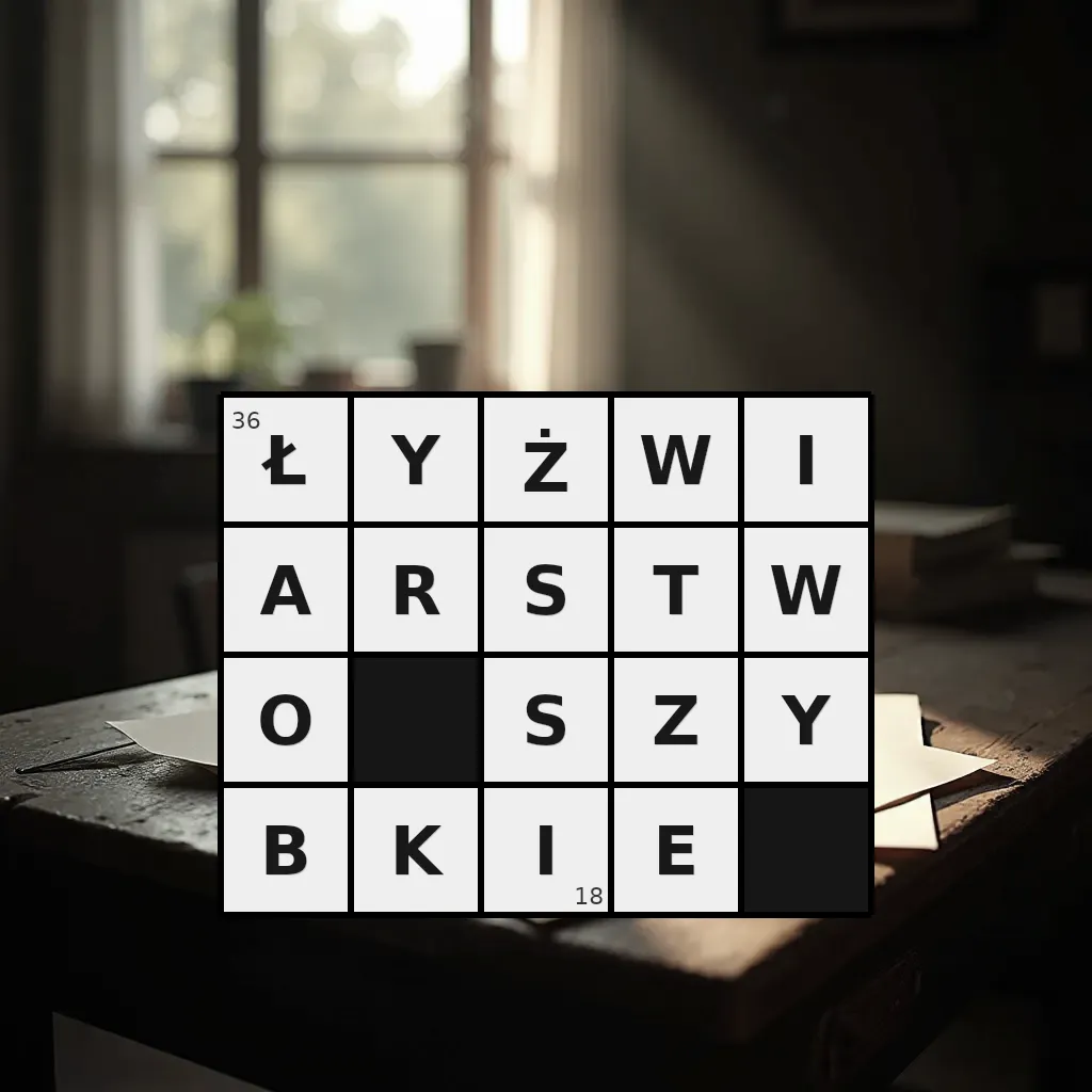 Zawiera litery: A, B, E, I, I, K, O, R, S, S, T, W, W, Y, Y, Z, Ł, Ż