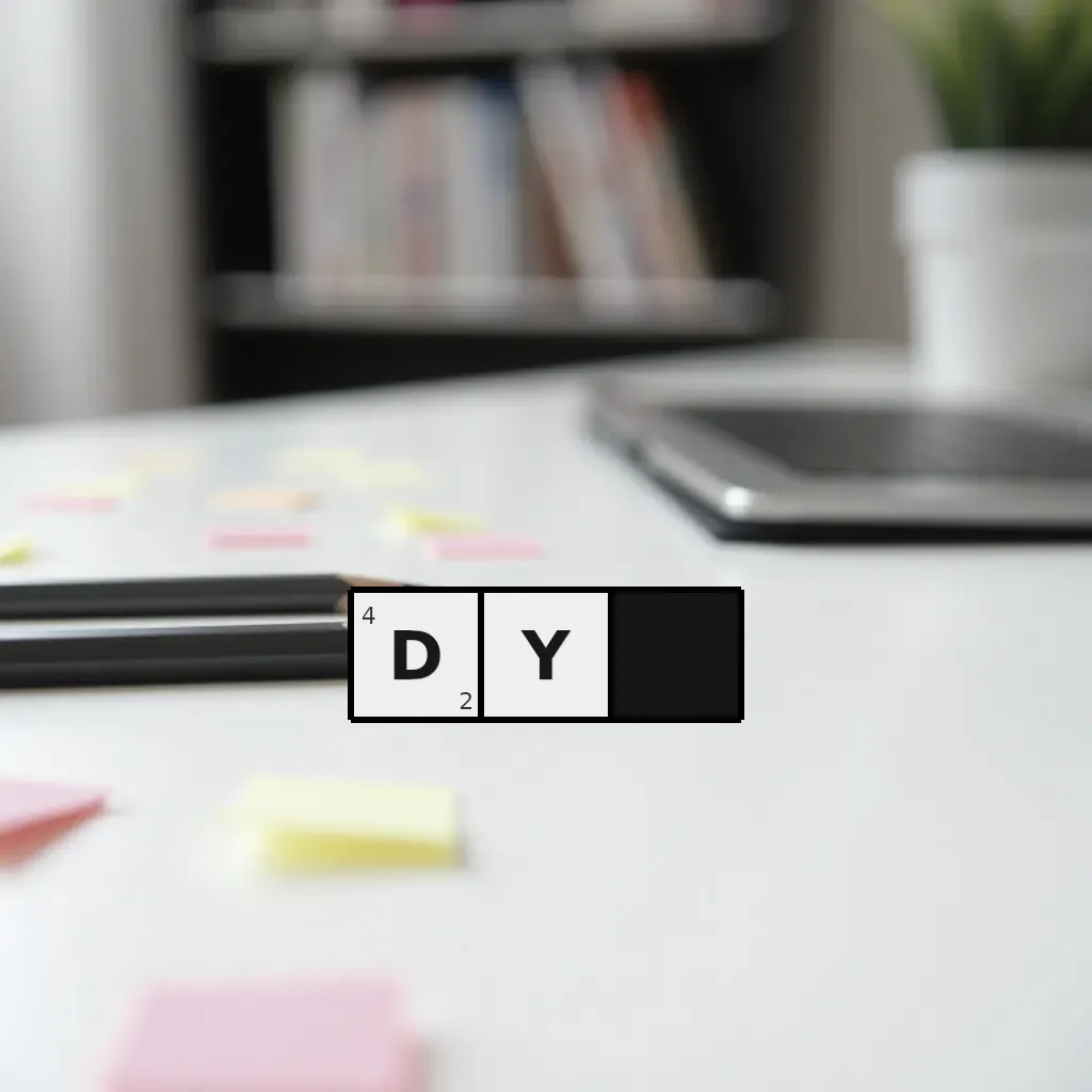 Słowo „dy” ma 2 znaki (bez spacji i łączników).