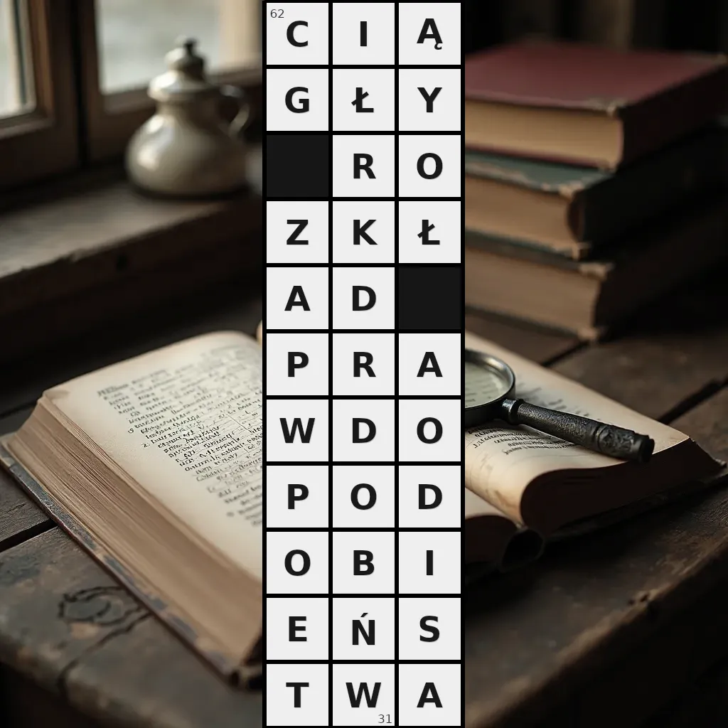 Słowo „ciągły rozkład prawdopodobieństwa” ma 31 znak (bez spacji i łączników).