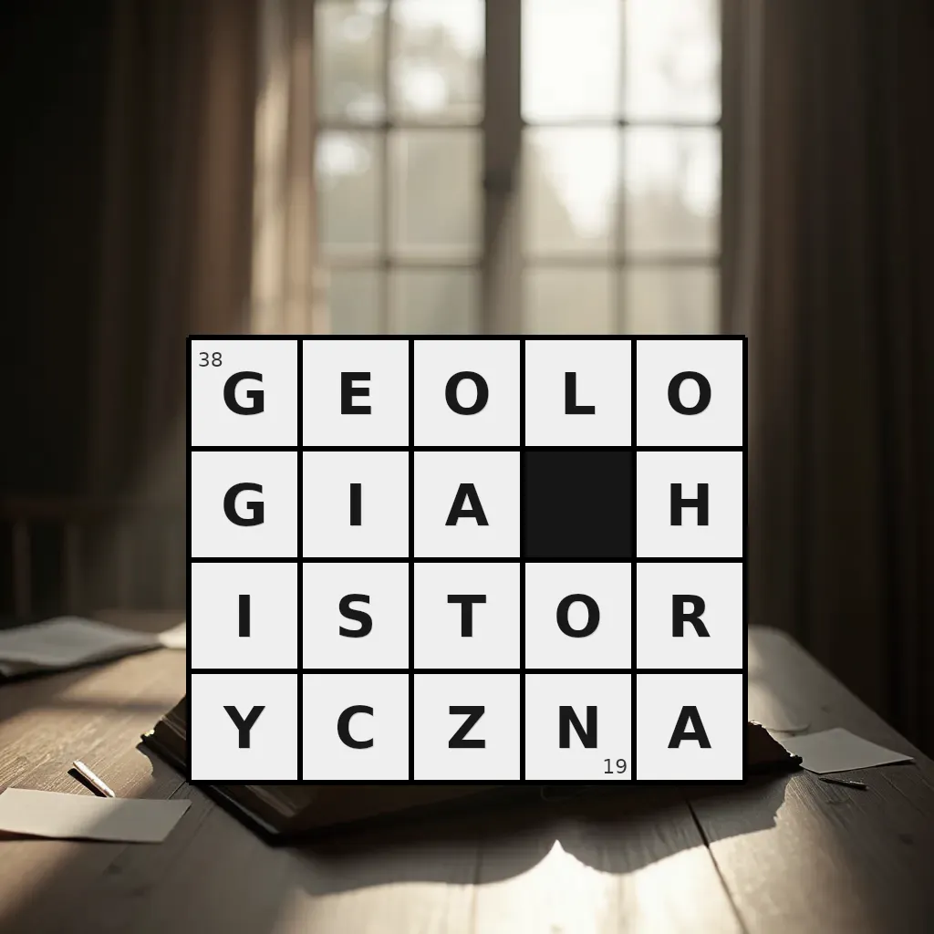 Słowo „geologia historyczna” ma 19 znaków (bez spacji i łączników).