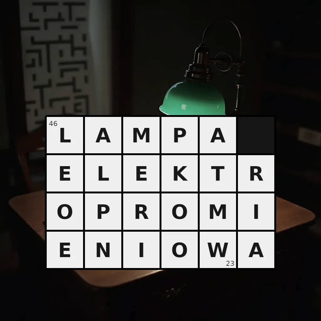 Słowo „lampa elektropromieniowa” ma 23 znaki (bez spacji i łączników).