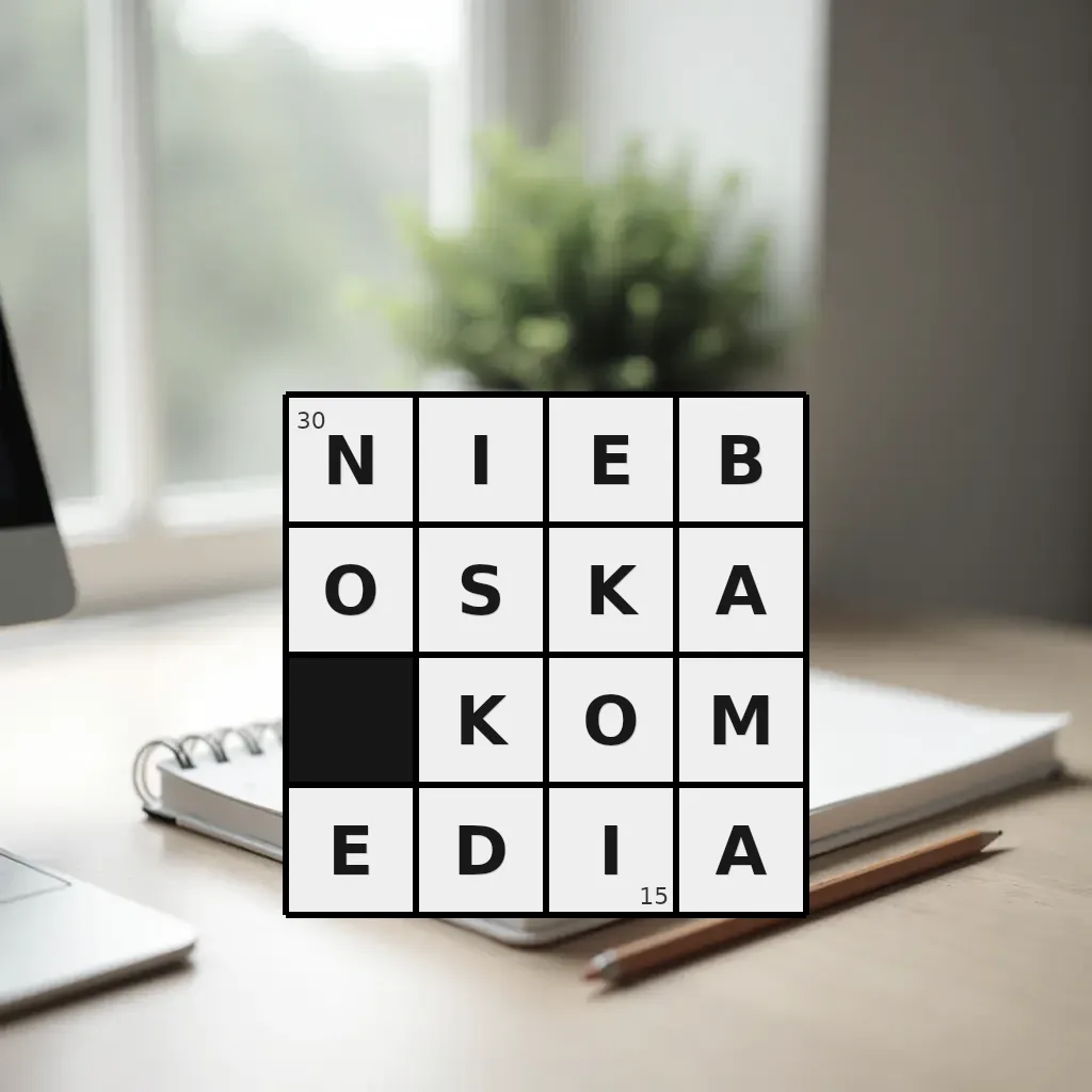 Słowo „nieboska komedia” ma 15 znaków (bez spacji i łączników).