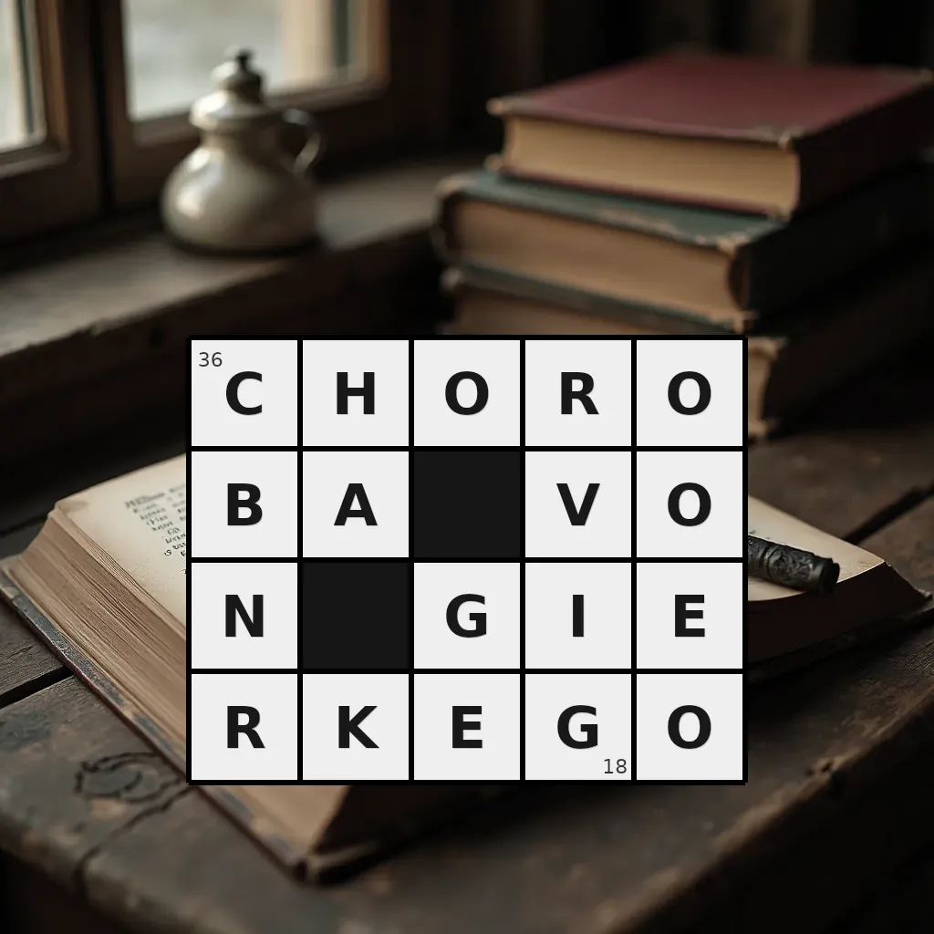 Zawiera litery: A, B, C, E, E, G, G, H, I, K, N, O, O, O, O, R, R, V