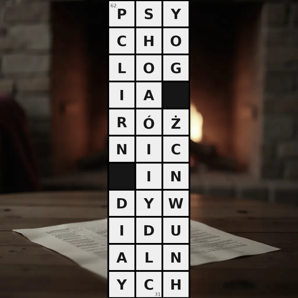 Słowo „psychologia różnic indywidualnych” ma 31 znak (bez spacji i łączników).