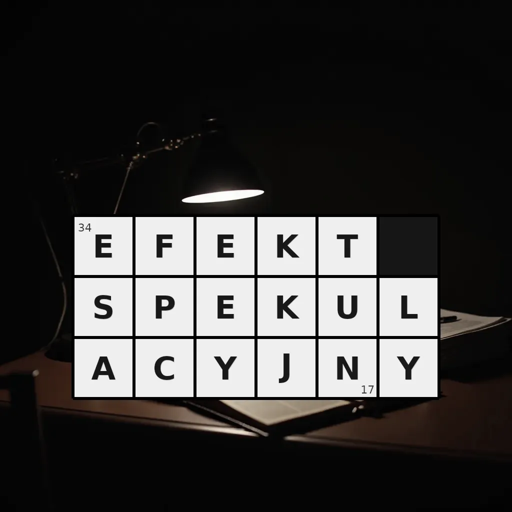 Słowo „efekt spekulacyjny” ma 17 znaków (bez spacji i łączników).
