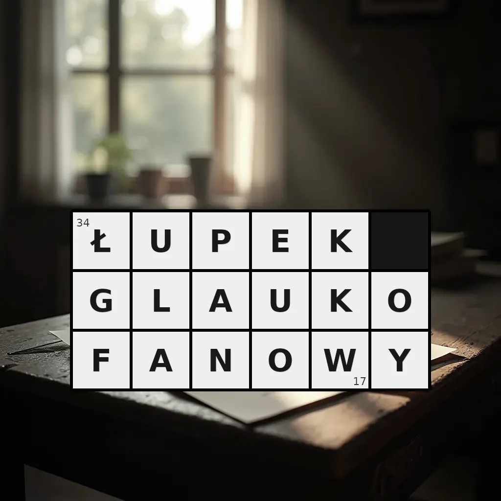 Słowo „łupek glaukofanowy” ma 17 znaków (bez spacji i łączników).