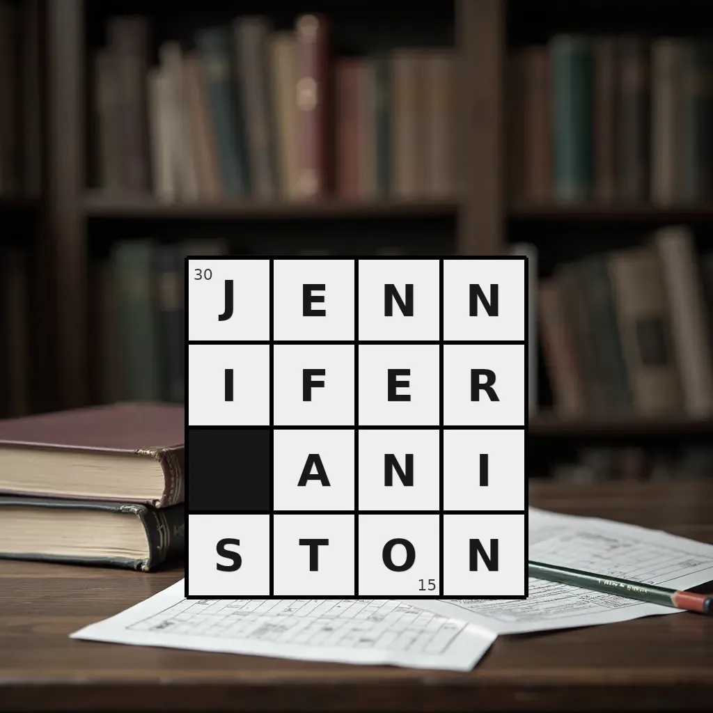 Słowo „jennifer aniston” ma 15 znaków (bez spacji i łączników).