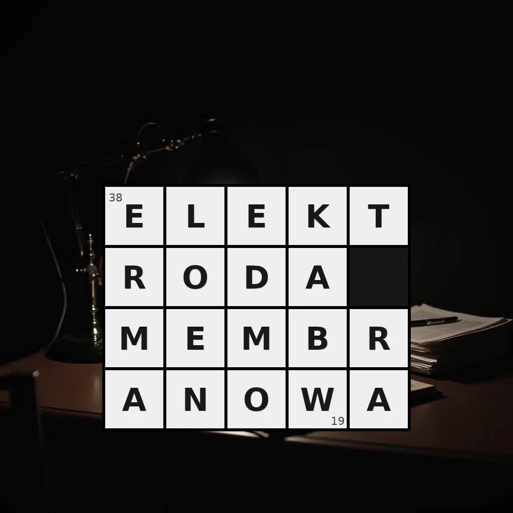 Słowo „elektroda membranowa” ma 19 znaków (bez spacji i łączników).