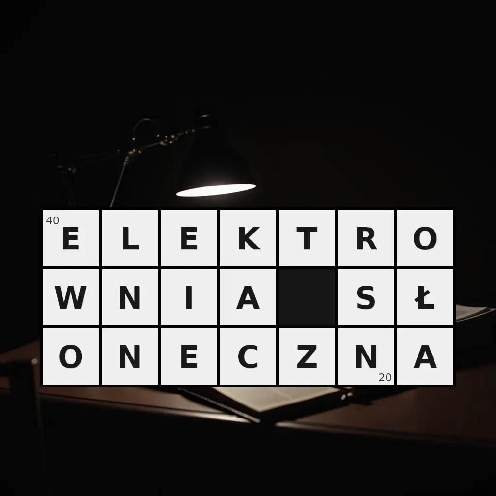 Słowo „elektrownia słoneczna” ma 20 znaków (bez spacji i łączników).