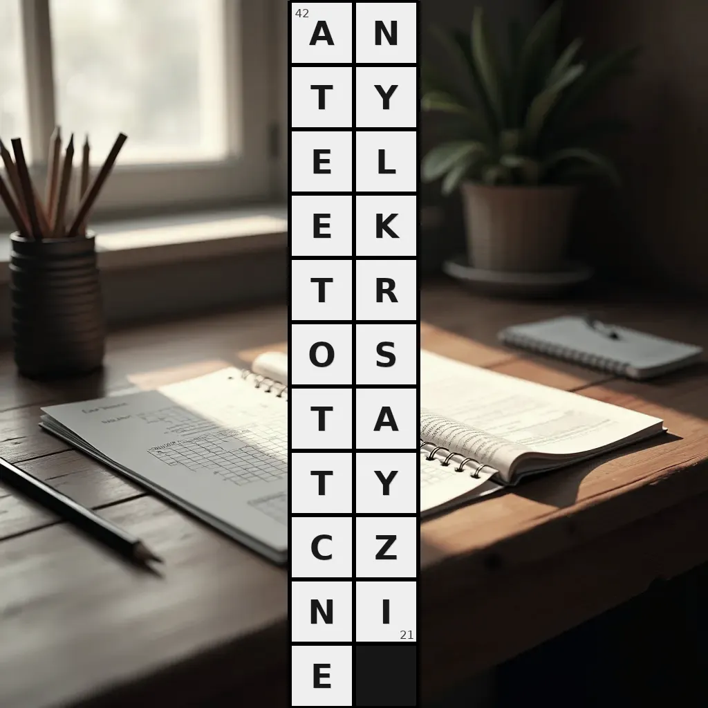 Zawiera litery: A, A, C, E, E, E, I, K, L, N, N, O, R, S, T, T, T, T, Y, Y, Z