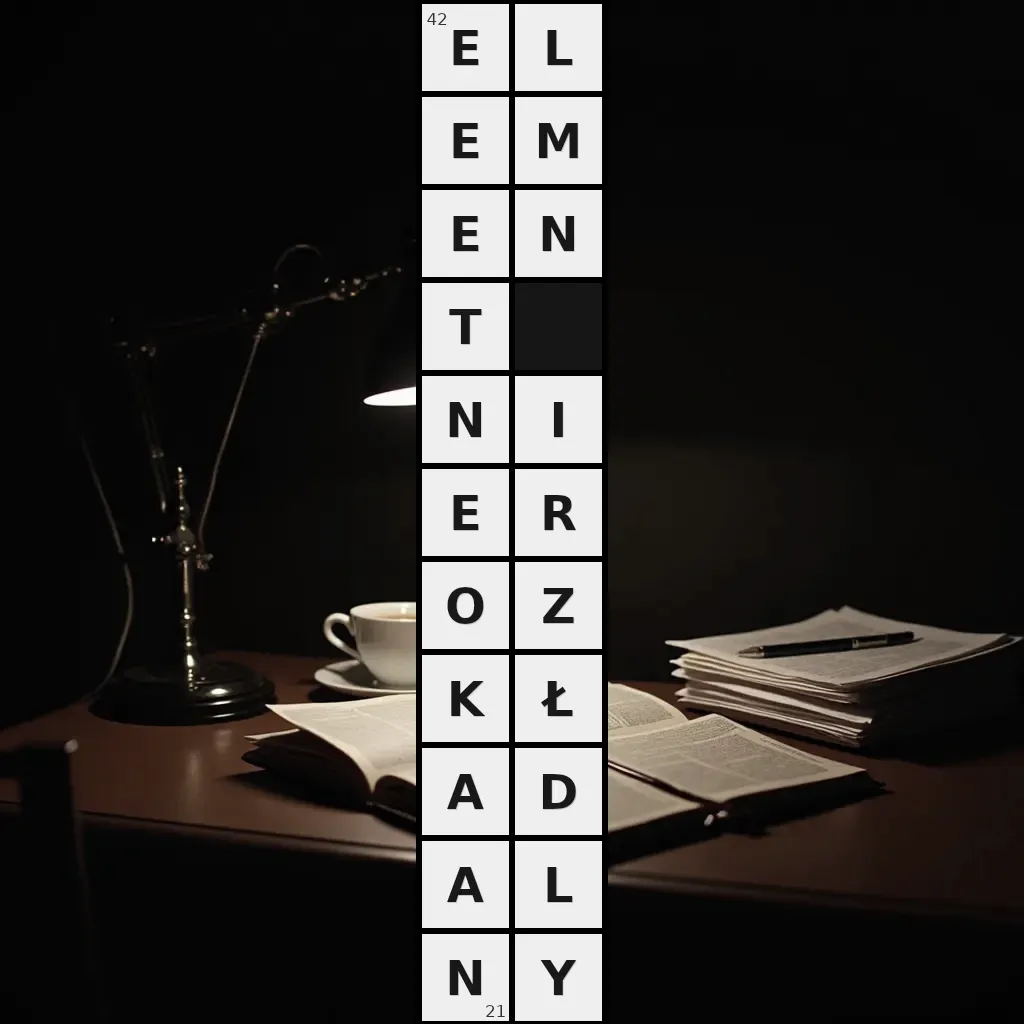 Słowo „element nierozkładalny” ma 21 znak (bez spacji i łączników).