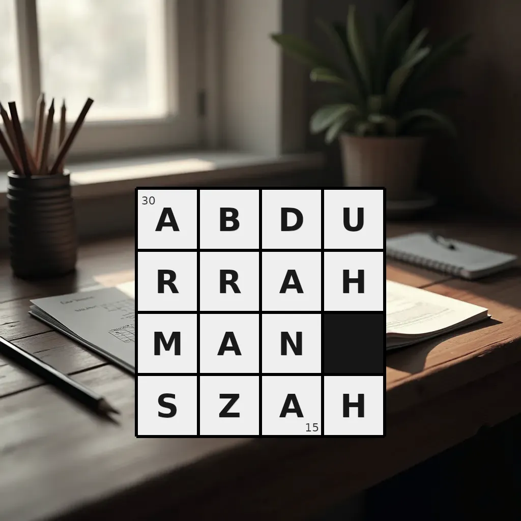 Słowo „abdurrahman szah” ma 15 znaków (bez spacji i łączników).