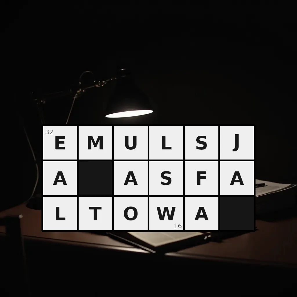 Słowo „emulsja asfaltowa” ma 16 znaków (bez spacji i łączników).