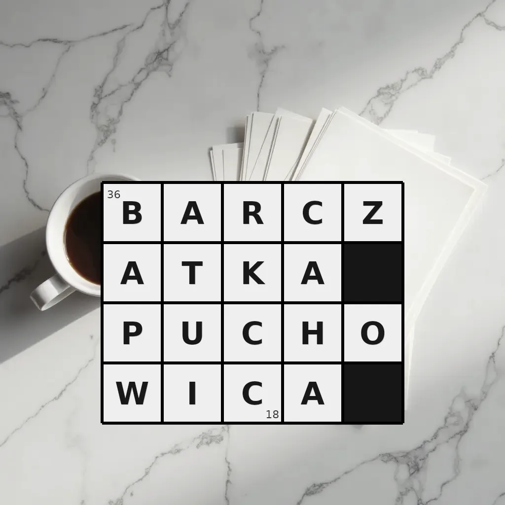 Słowo „barczatka puchowica” ma 18 znaków (bez spacji i łączników).