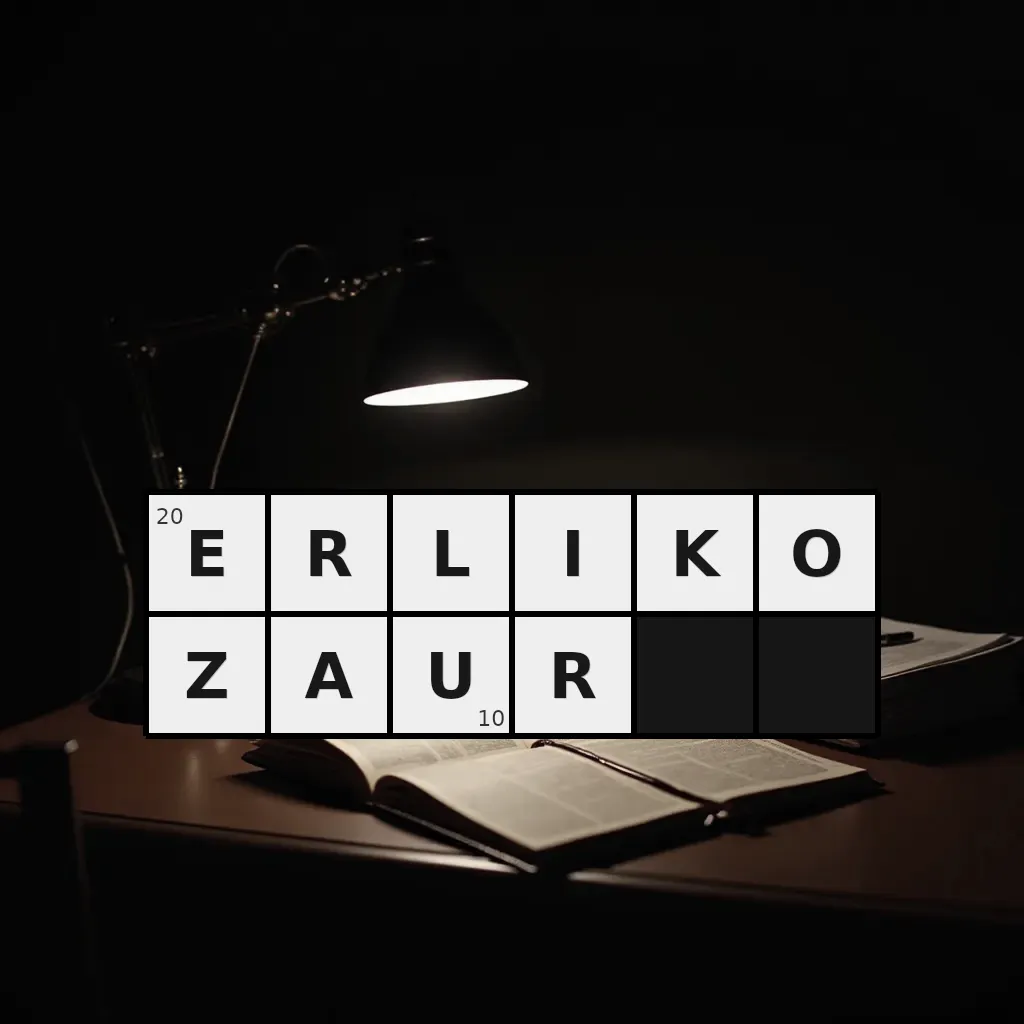 Słowo „erlikozaur” ma 10 znaków (bez spacji i łączników).