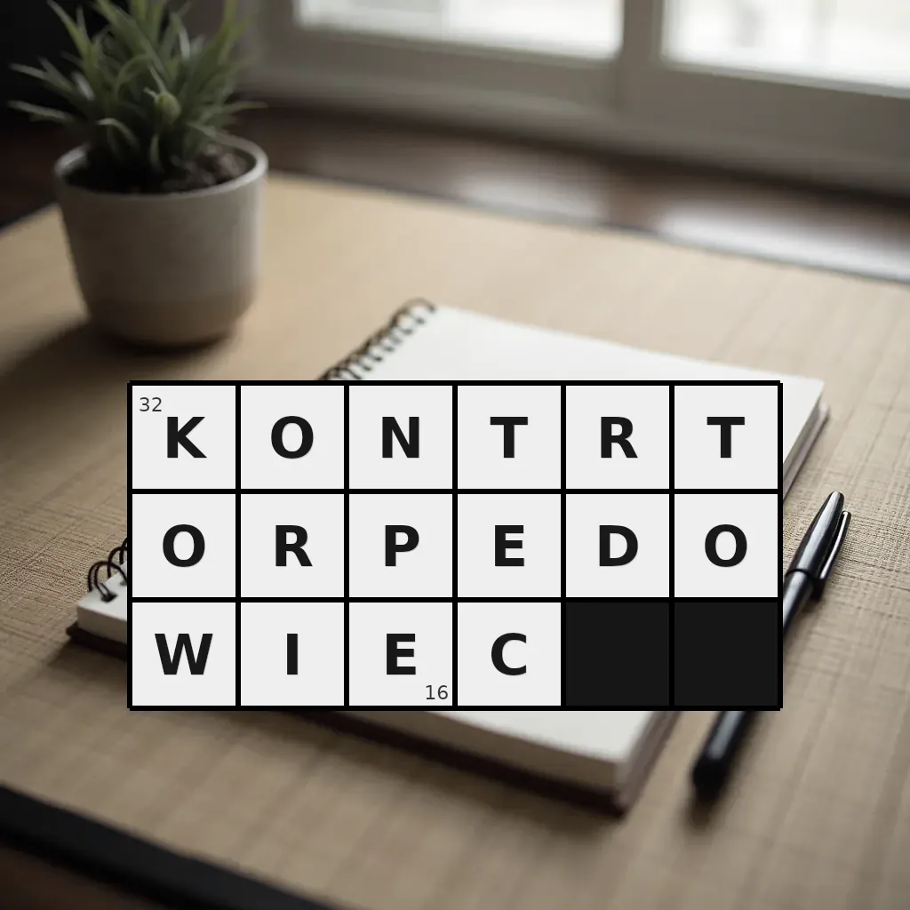 Zawiera litery: C, D, E, E, I, K, N, O, O, O, P, R, R, T, T, W