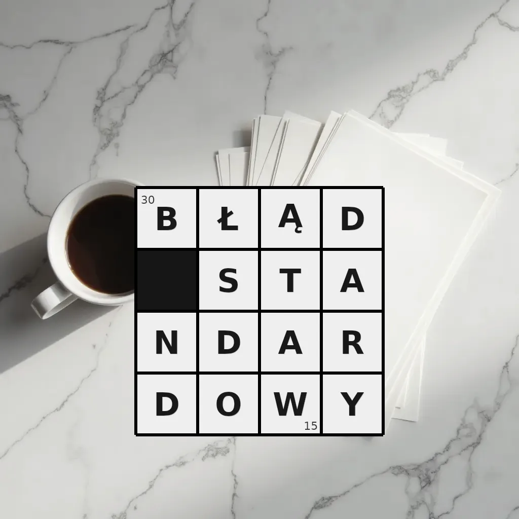 Słowo „błąd standardowy” ma 15 znaków (bez spacji i łączników).