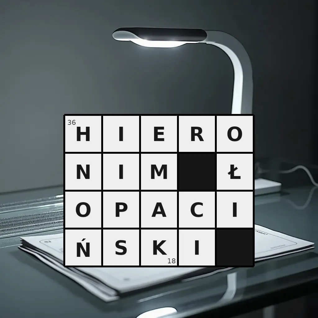 Słowo „hieronim łopaciński” ma 18 znaków (bez spacji i łączników).