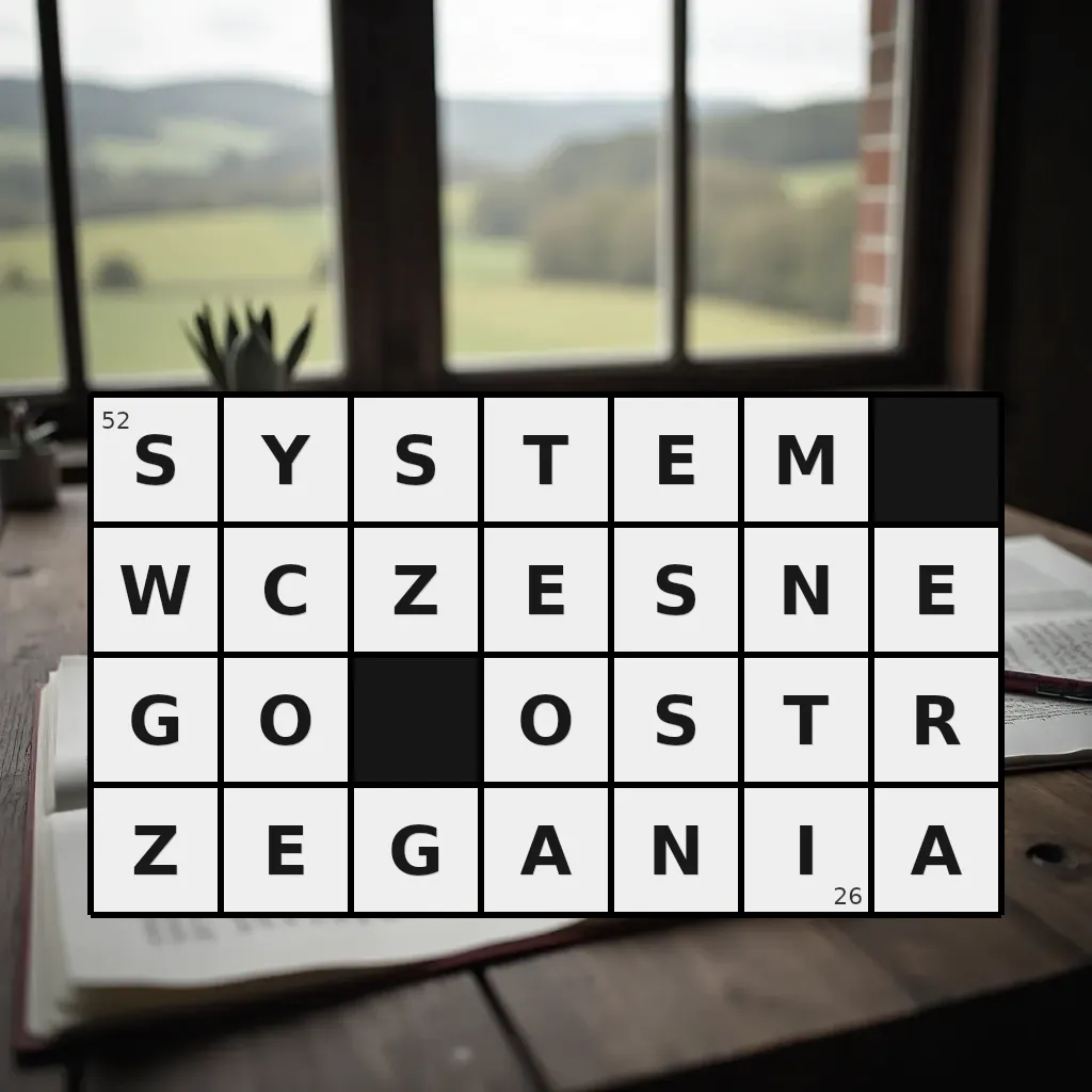 Słowo „system wczesnego ostrzegania” ma 26 znaków (bez spacji i łączników).