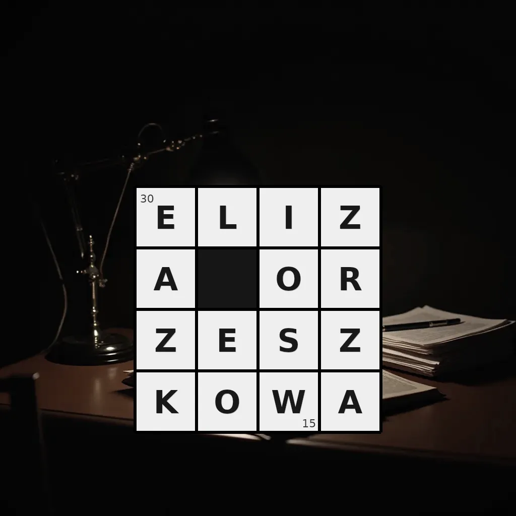 Słowo „eliza orzeszkowa” ma 15 znaków (bez spacji i łączników).