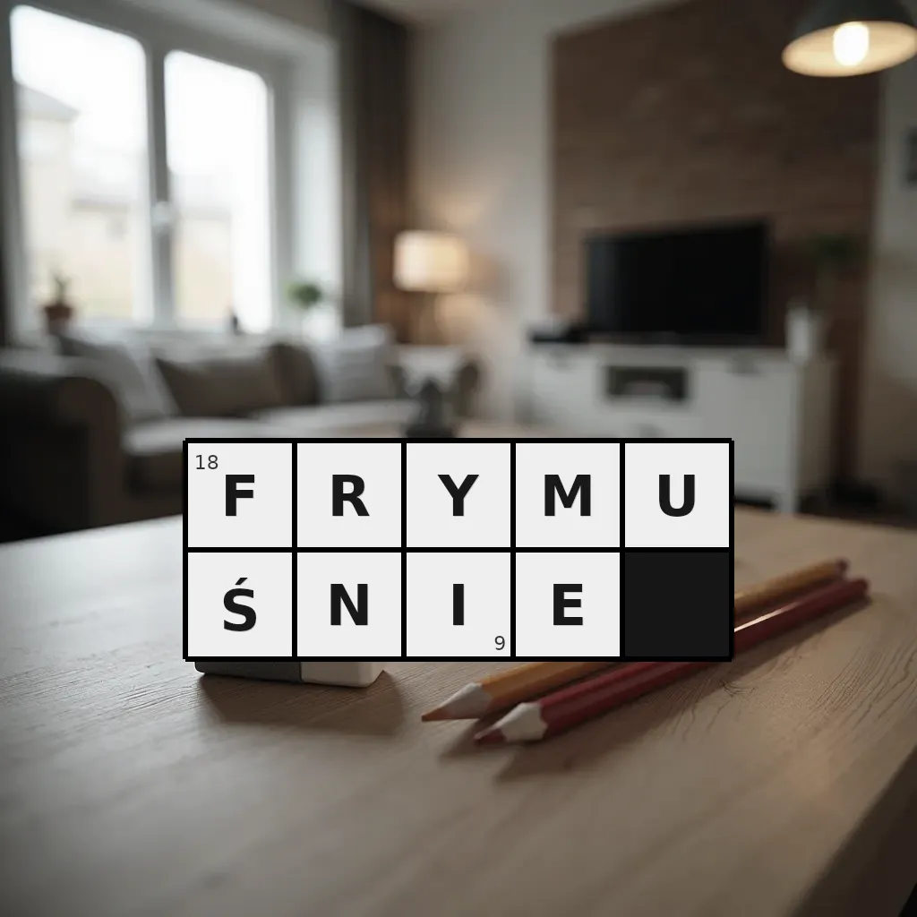 Słowo „frymuśnie” ma 9 znaków (bez spacji i łączników).