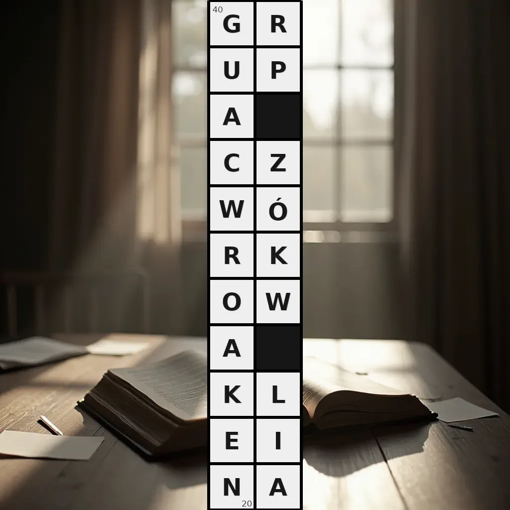 Zawiera litery: A, A, A, C, E, G, I, K, K, L, N, O, P, R, R, U, W, W, Z, Ó