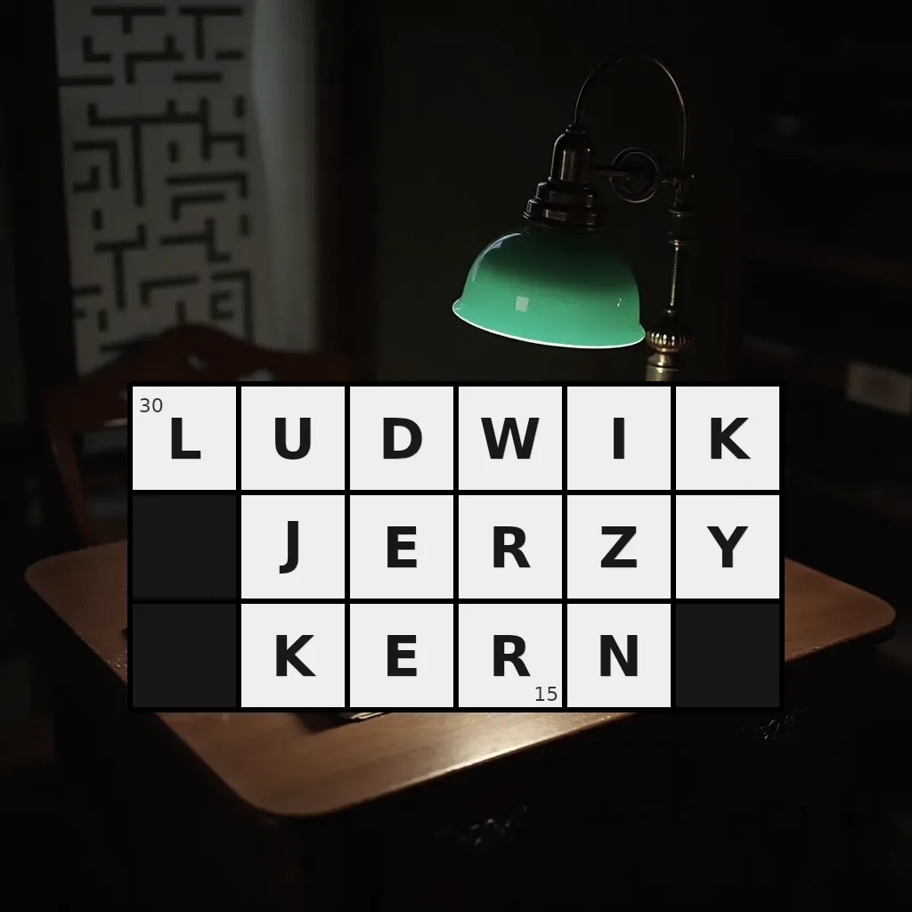 Słowo „ludwik jerzy kern” ma 15 znaków (bez spacji i łączników).