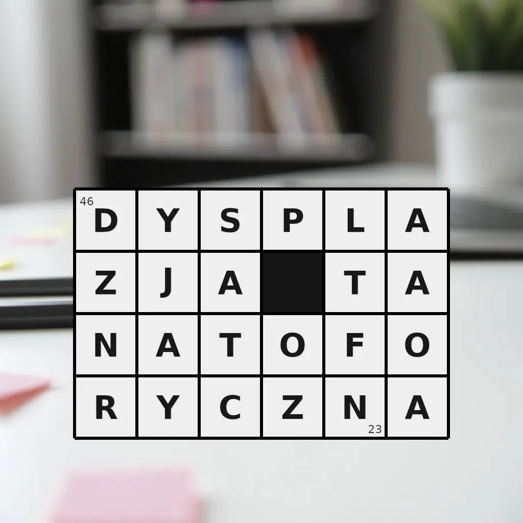 Słowo „dysplazja tanatoforyczna” ma 23 znaki (bez spacji i łączników).