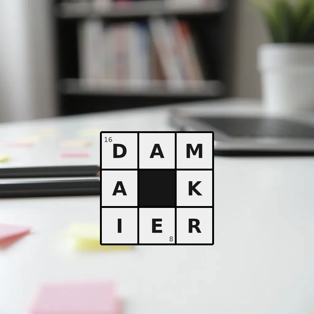 Słowo „dama kier” ma 8 znaków (bez spacji i łączników).