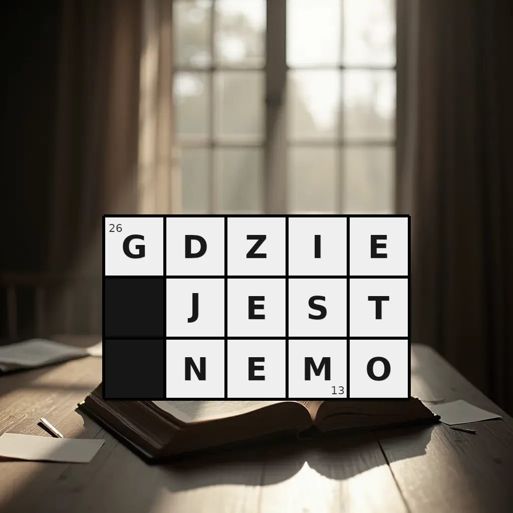 Słowo „gdzie jest nemo” ma 13 znaków (bez spacji i łączników).