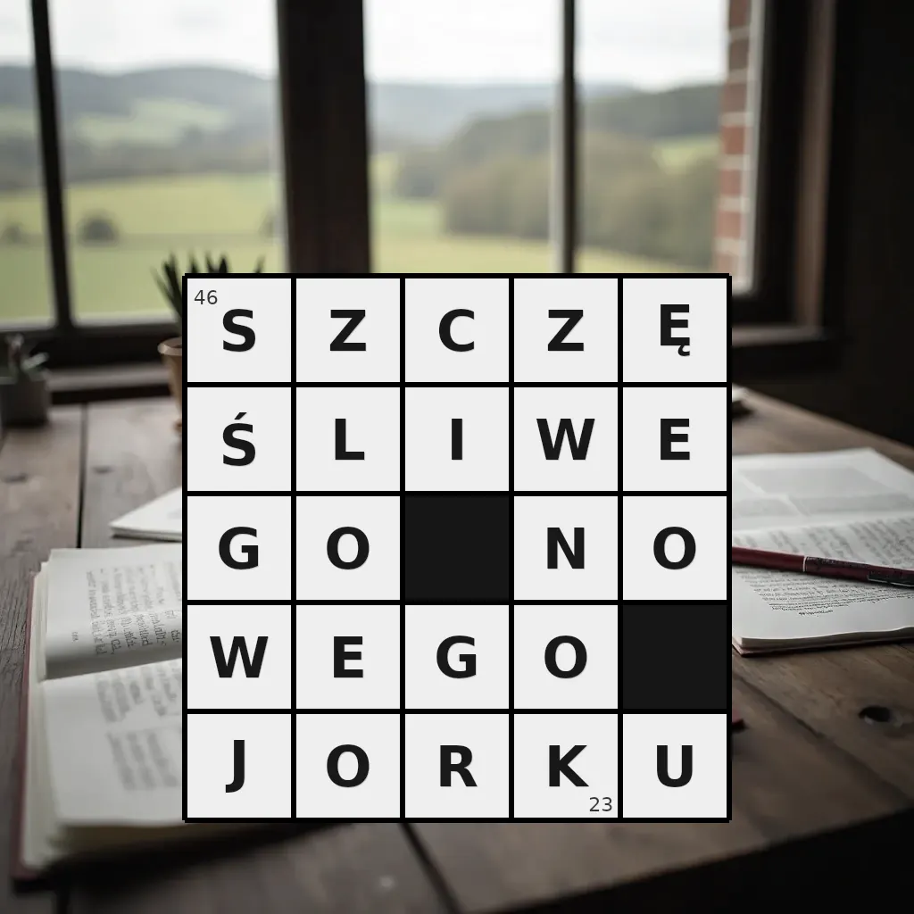 Słowo „szczęśliwego nowego jorku” ma 23 znaki (bez spacji i łączników).