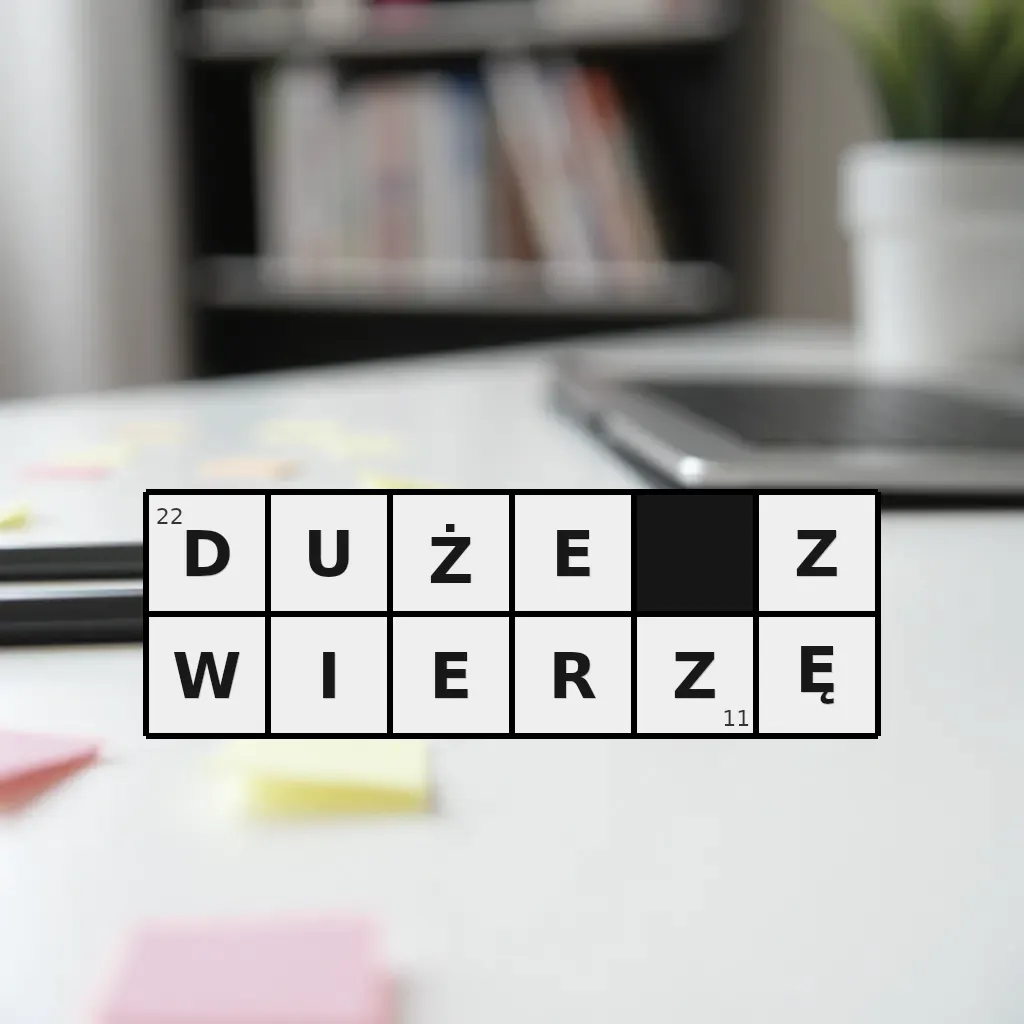 Słowo „duże zwierzę” ma 11 znaków (bez spacji i łączników).