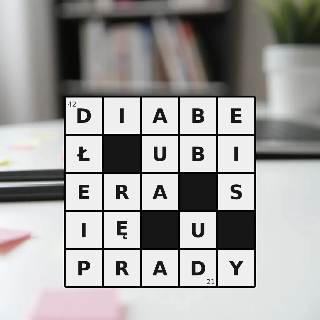 Słowo „diabeł ubiera się u prady” ma 21 znak (bez spacji i łączników).