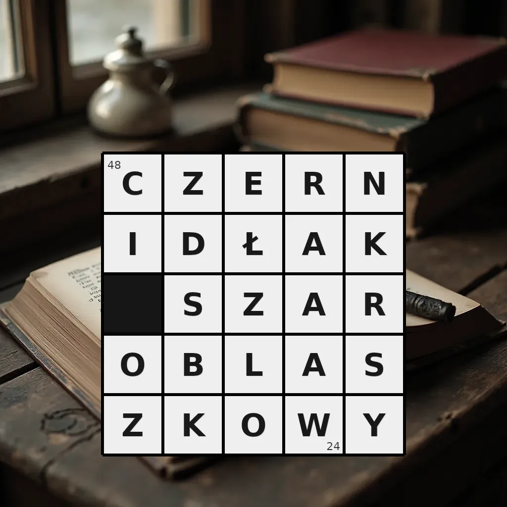 Słowo „czernidłak szaroblaszkowy” ma 24 znaki (bez spacji i łączników).