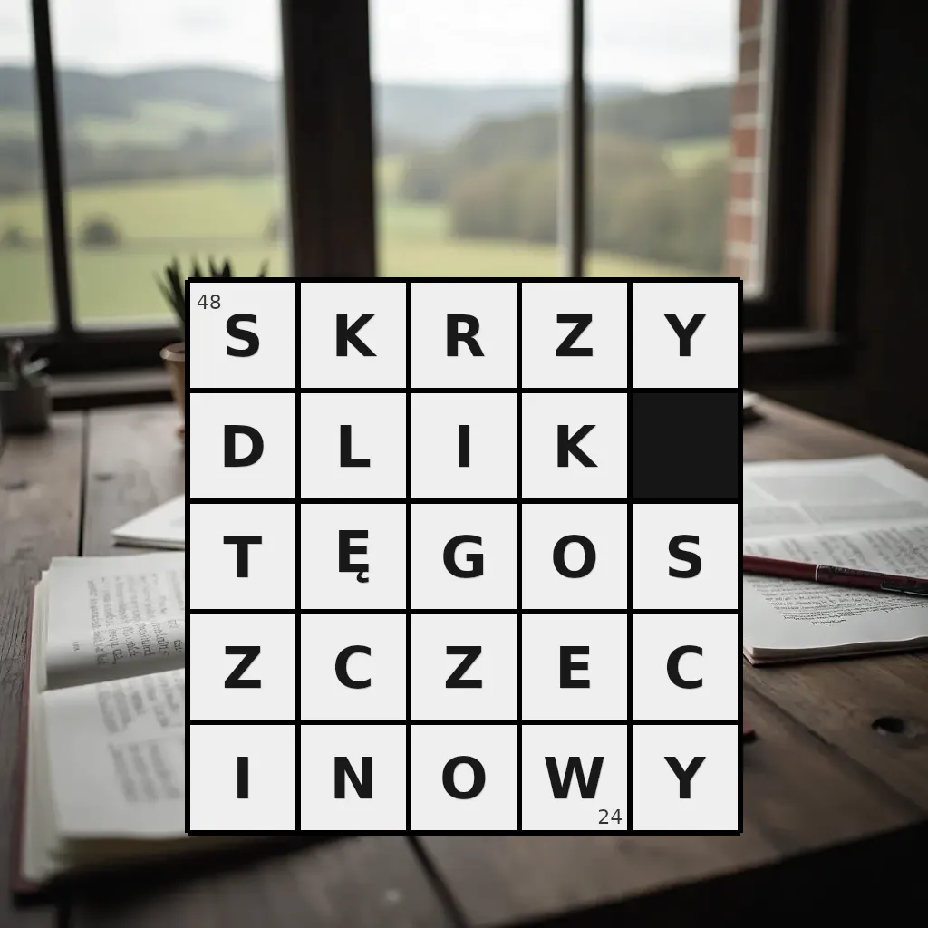 Słowo „skrzydlik tęgoszczecinowy” ma 24 znaki (bez spacji i łączników).